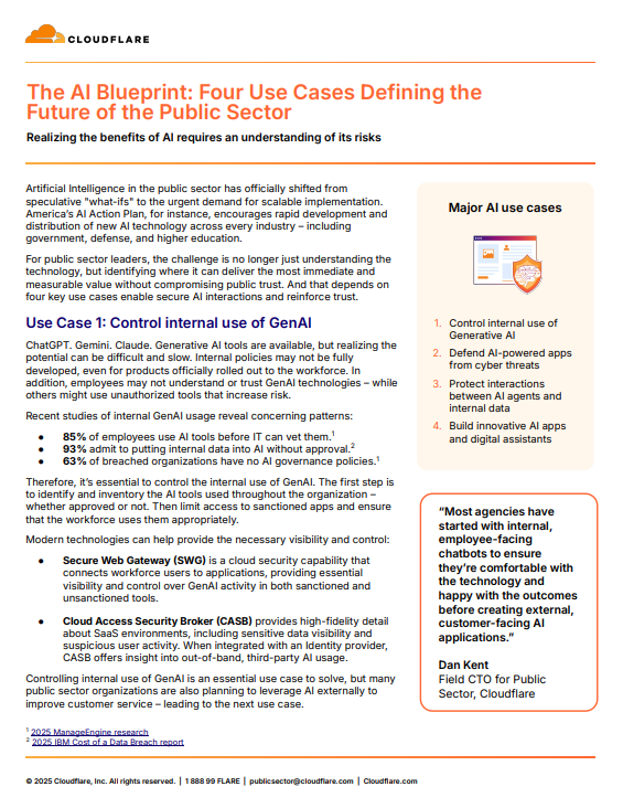 This report outlines four critical AI use cases shaping the future of the public sector as agencies move from experimentation to real world implementation. It highlights how leaders can securely adopt generative AI, defend AI powered applications, protect sensitive data interactions, and build innovative digital assistants without sacrificing trust. Designed for public sector decision makers, the report provides a clear blueprint for unlocking AI value while managing risk and governance from day one.
